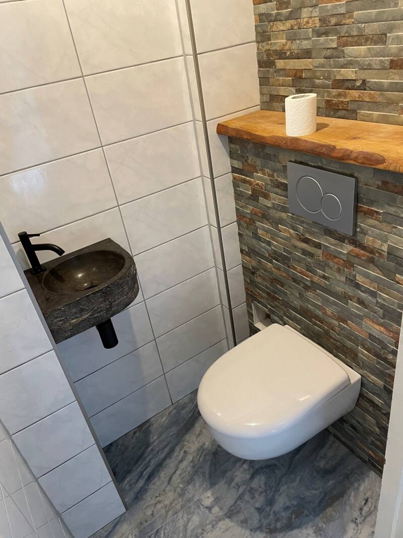 Deze toilet had een probleem: de pot was te hoog geïnstalleerd, waardoor het comfort niet optimaal was. Oplossing? De vloer verhogen! Dankzij deze renovatie is de toilet nu perfect in balans. Ik heb de ruimte opnieuw geëgaliseerd en voorzien van prachtige nieuwe tegels. Klaar voor jaren van gebruik!